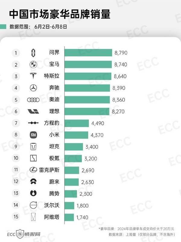 近期,中国汽车市场2025年6月首周的上险量数据揭晓,揭示了一项令人瞩目的变化。在这一关键时段,AITO问界汽车成功超越了传统豪华品牌奔驰、宝马、奥迪,荣登中国豪华汽车品牌上险量榜首。